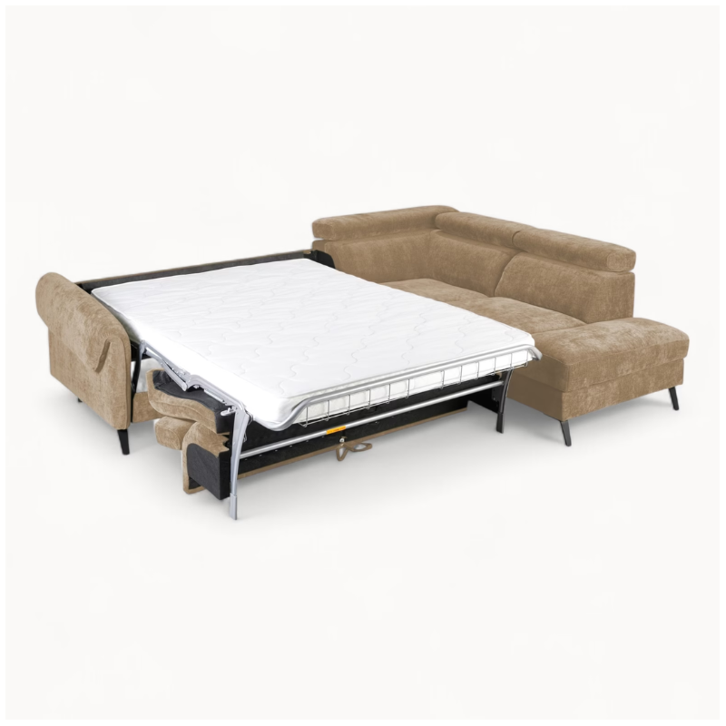 Warm Beige upholstery is a timeless and versatile choice for this sofa bed. We offer a wide range of warm beige and neutral tones, from soft sand to elegant stone shades, available in both fabric and leather options.
