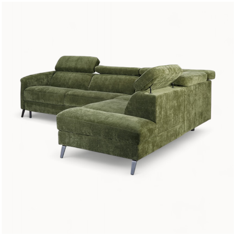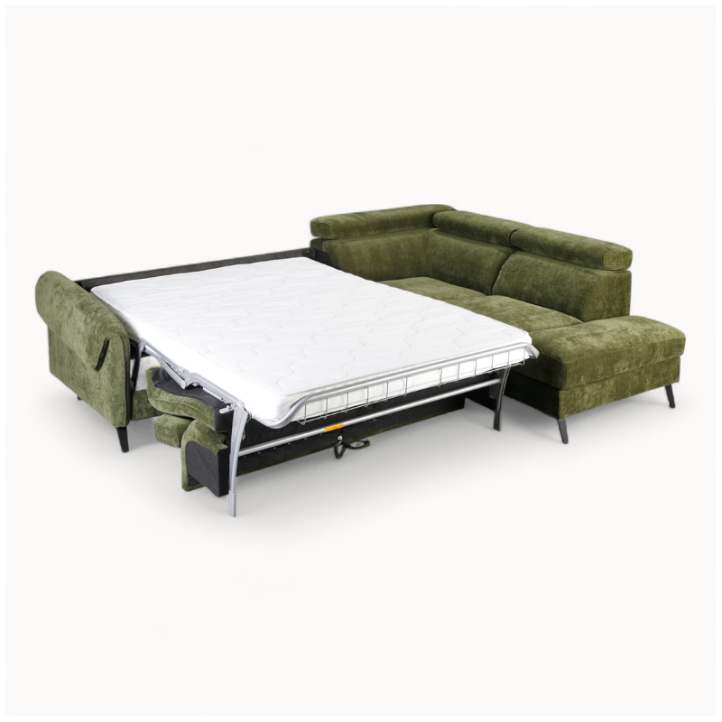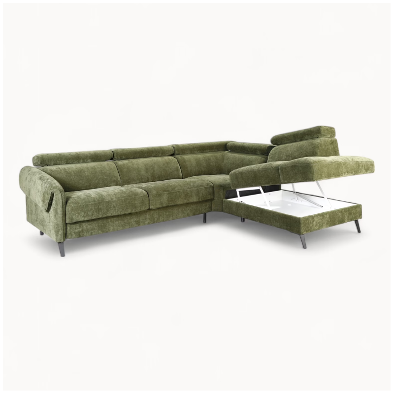 Bergamo Corner Sofa with Bed Function & Storage — Green