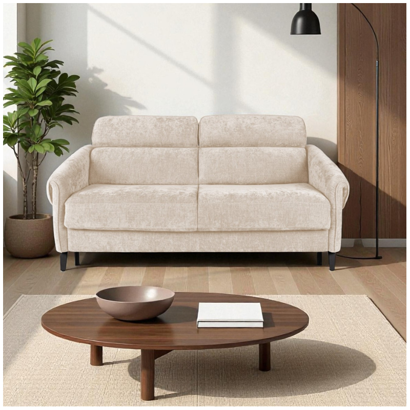 Beige upholstery is a modern and versatile choice for this sofa bed. We offer a wide range of beige tones, from soft sand to elegant stone shades, available in both fabric and leather options.