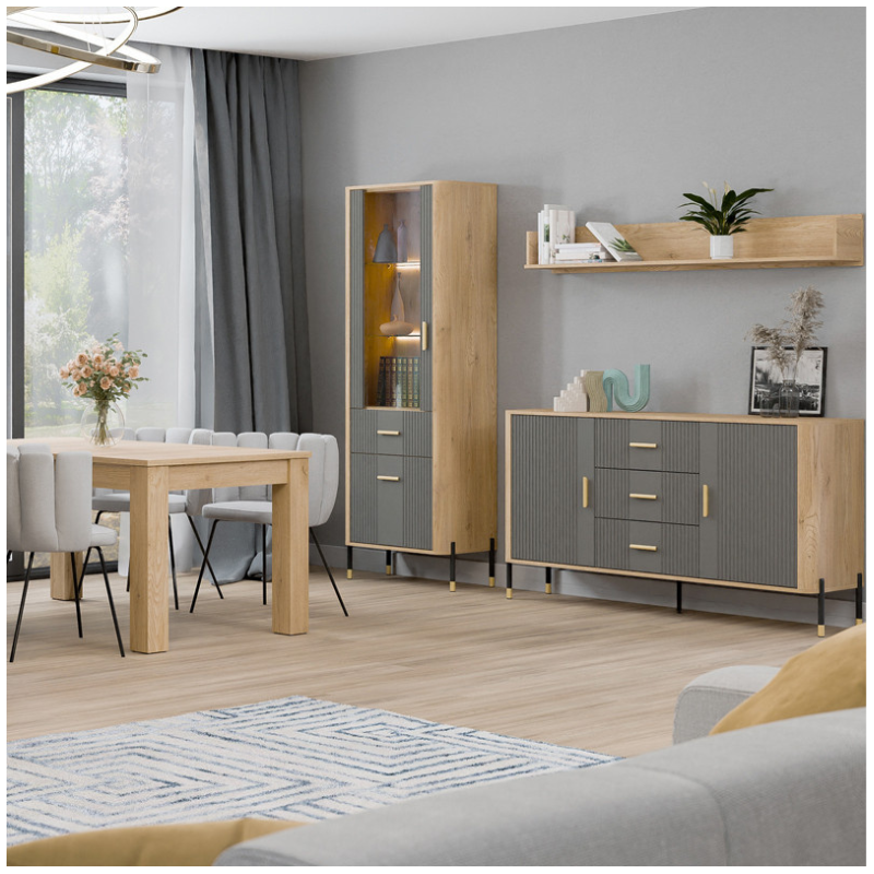 The Dante Small Bedside Table in Matte Gray and Oak is a perfect balance of modern elegance and everyday functionality. Designed with a carefully selected combination of materials and colors, this stylish bedside table features matte gray fronts paired with the warm, natural tone of oak, creating a cohesive, contemporary look that suits a wide range of bedroom interiors.