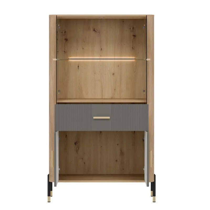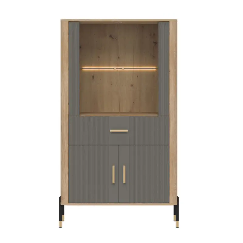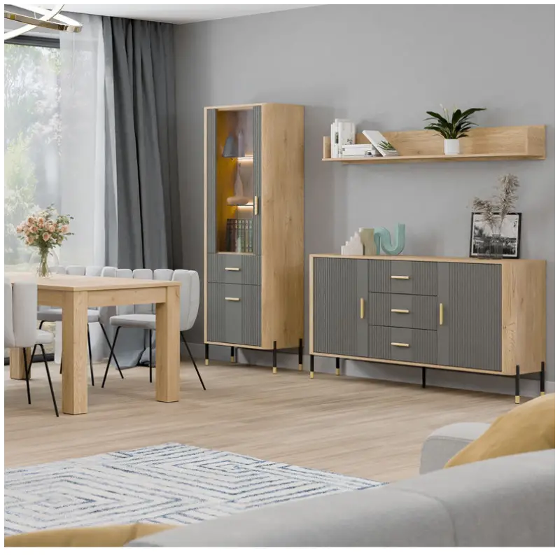 The Dante Low Display Cabinet in Matte Gray and Oak offers a perfect balance of modern elegance and everyday functionality. Designed with a carefully selected combination of materials and colours, this stylish display cabinet features matte gray fronts paired with the warm, natural tone of oak, creating a cohesive, contemporary look that suits a wide range of living and dining interiors.