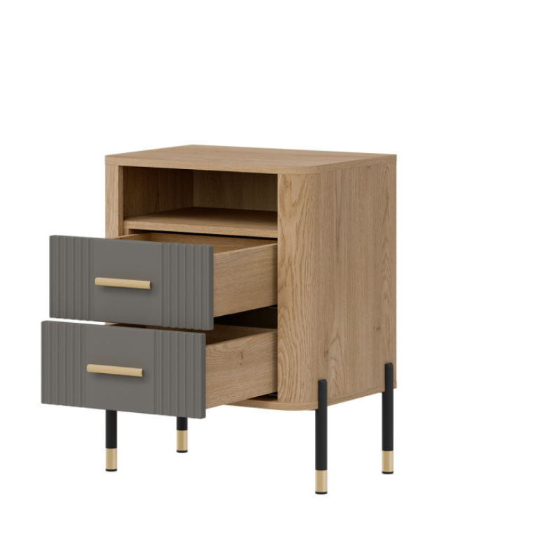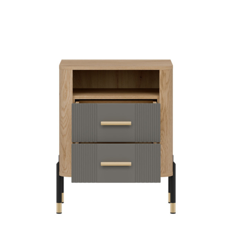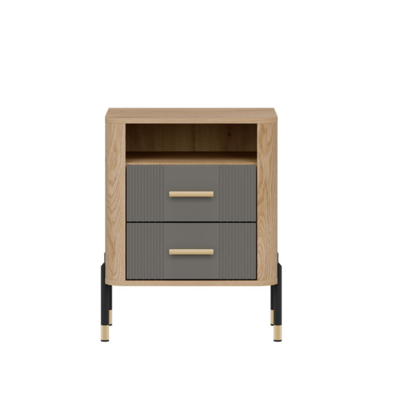 The Dante Bedside Table in Matte Gray and Oak is a perfect balance of modern elegance and everyday functionality. Designed with a carefully selected combination of materials and colors, this stylish bedside table features matte gray fronts paired with the warm, natural tone of oak, creating a cohesive, contemporary look that suits a wide range of bedroom interiors.