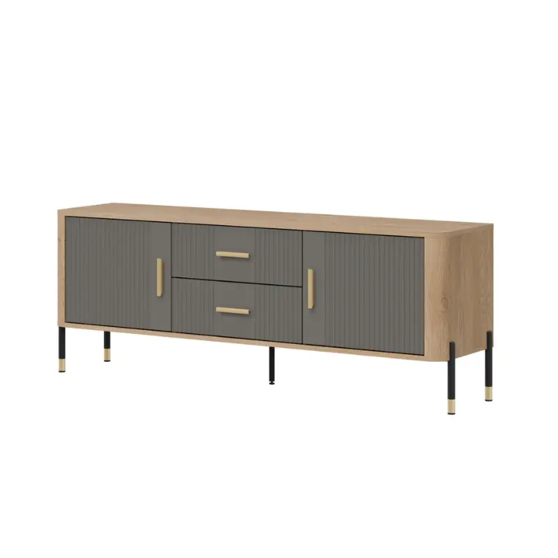 The Dante TV Stand in Matte Gray and Oak offers a perfect balance of modern elegance and everyday functionality. Designed with a carefully selected combination of materials and colours, this stylish TV stand cabinet features matte gray fronts paired with the warm, natural tone of oak, creating a cohesive, contemporary look that suits a wide range of living room interiors.
