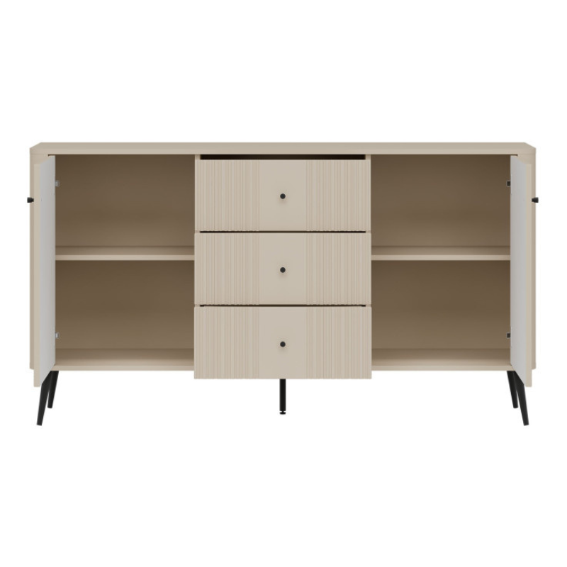 Crafted from high-quality materials, the Vigo chest of drawers is built for durability and everyday use. The easy-to-clean, scratch-resistant surface helps maintain its elegant appearance over time. Clean lines, metal handles, and slim metal legs enhance the modern aesthetic, making it a versatile and stylish storage solution.