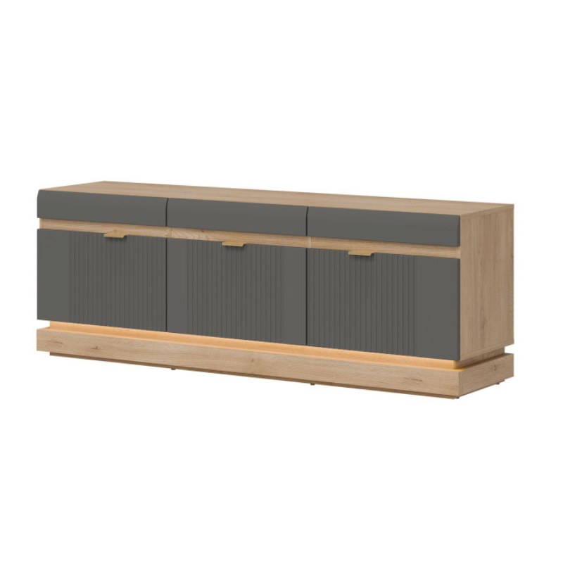 Milton TV Unit in Matte Grey and Oak – Modern Design with Elegant Details