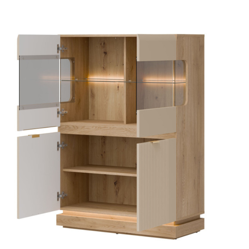 Milton Low Display Cabinet in Cashmere Matte and Oak