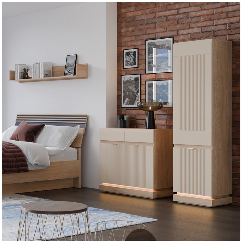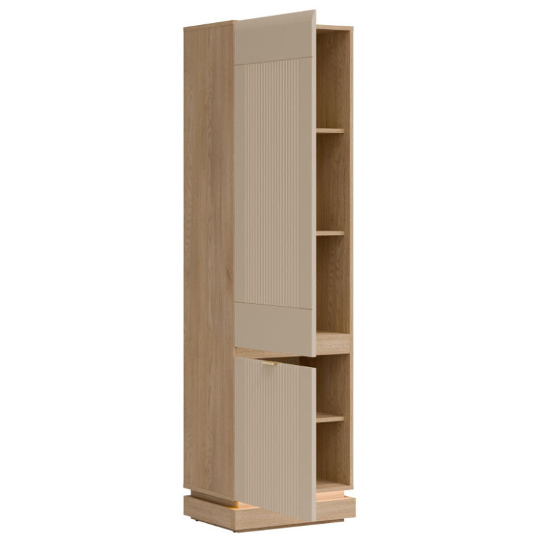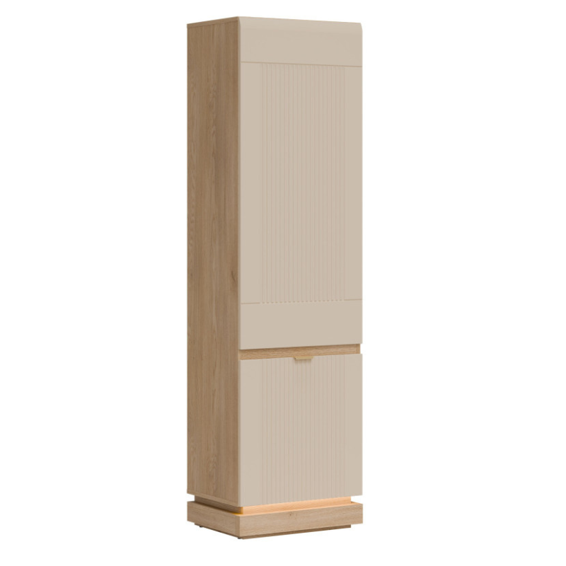 Milton Tall Cabinet in Cashmere Matte and Oak – Modern Design with Elegant Details
