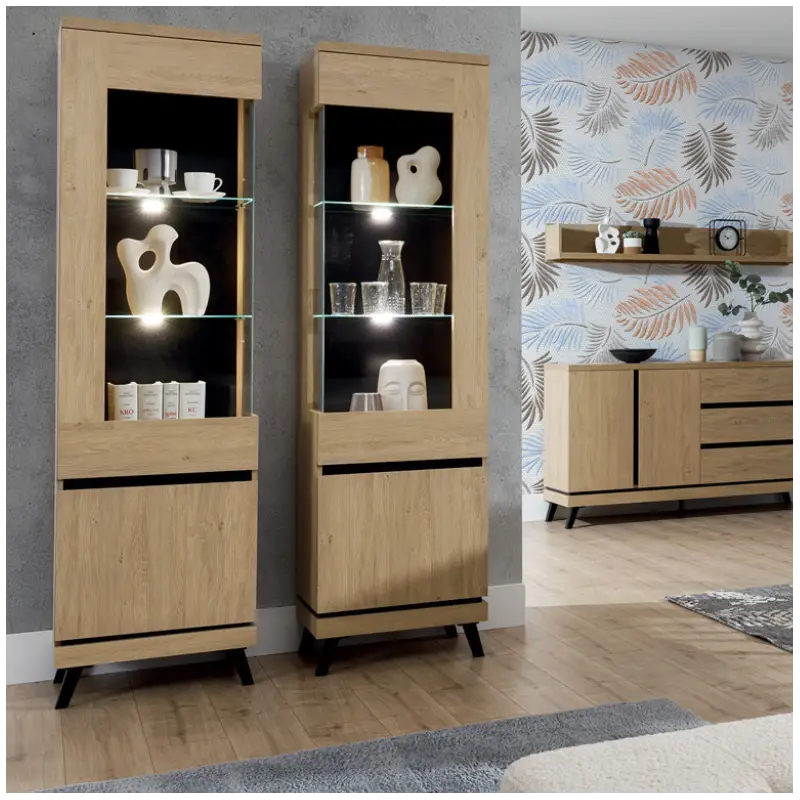 The Ate display cabinet is a modern and elegant display unit designed to bring style and functionality to contemporary interiors. With its tall, slim profile, this cabinet is ideal for showcasing decorative items, glassware, books, or collectibles while making efficient use of vertical space.