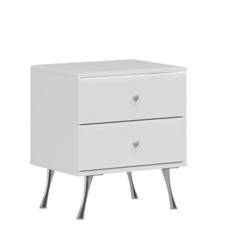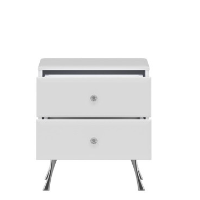 Elevate your bedroom décor with the Luxor Bedside Table in White. This stylish white bedside table features two spacious drawers with sparkling crystal handles, adding a touch of luxury and sophistication to any room. Perfect for modern and contemporary bedrooms, it provides a practical storage solution while enhancing the overall aesthetic of your space.