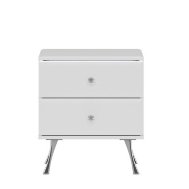 Luxor White Bedside Table with Crystal Handle