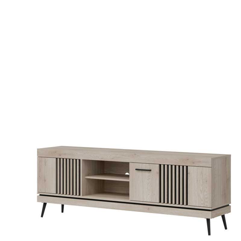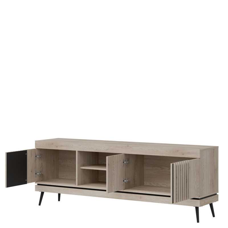 The combination of Cremona Cotta Oak and black accents creates an elegant, contemporary statement in any living room. The distinctive vertical grooves on the doors add character and texture—making this unit a standout piece among TV stands & media units.
