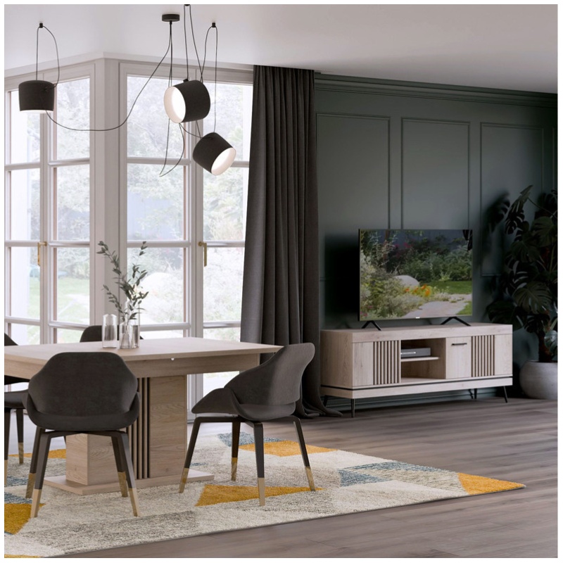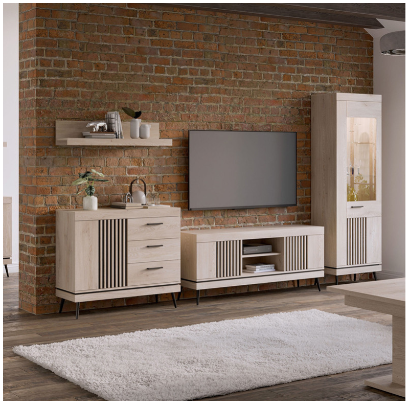 Add a touch of modern elegance and practicality to your living room with the stylish Mati TV Unit in Oak. Designed for contemporary interiors, this modern TV unit combines a warm Cremona Cotta Oak finish with sleek black details and vertical grooved doors for a premium, on-trend look. If you’re searching for a TV unit Ireland customers love for its design and everyday usability, Mati is an ideal choice.