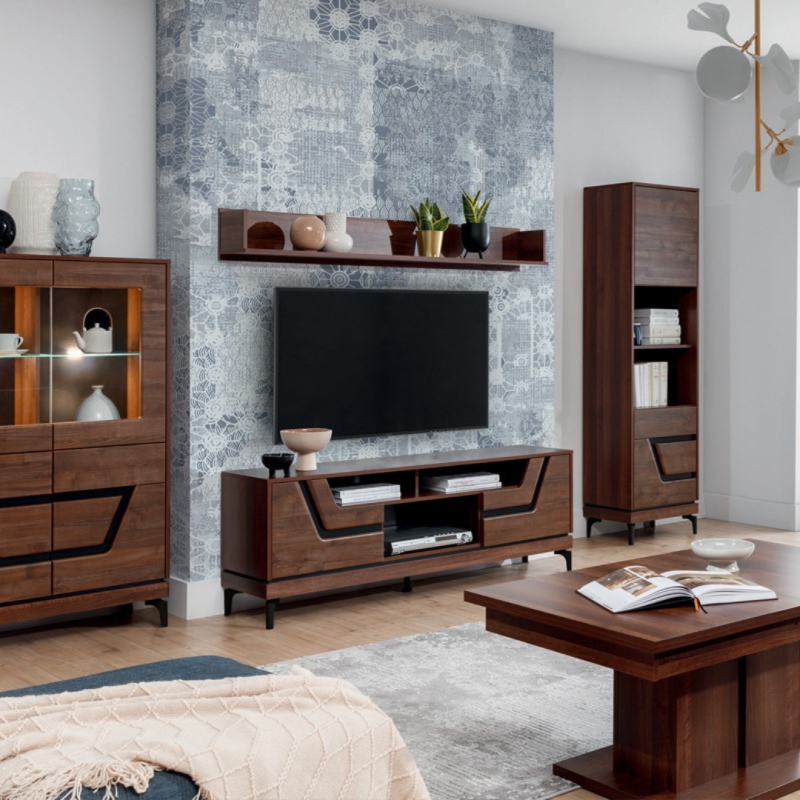 Enhance your living space with the stylish and functional Vero TV Unit. Designed for modern interiors, this elegant TV unit with storage combines minimalist design with everyday practicality. Finished in a sophisticated Opera Walnut and Black colour combination, it is an ideal choice for customers searching for premium TV units Ireland homes trust for quality and style.