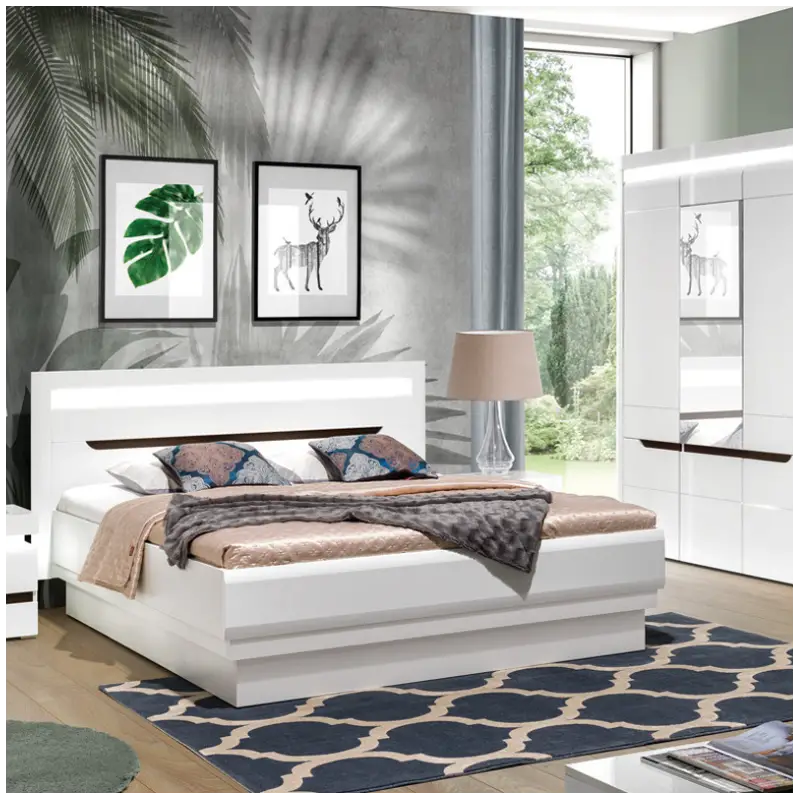 The Irma bed features a strong frame and a decorative headboard that creates a beautiful focal point in your bedroom. Its unique blend of matte and high-gloss white finishes reflects modern interior trends while adding brightness and a clean, fresh feel to your space.