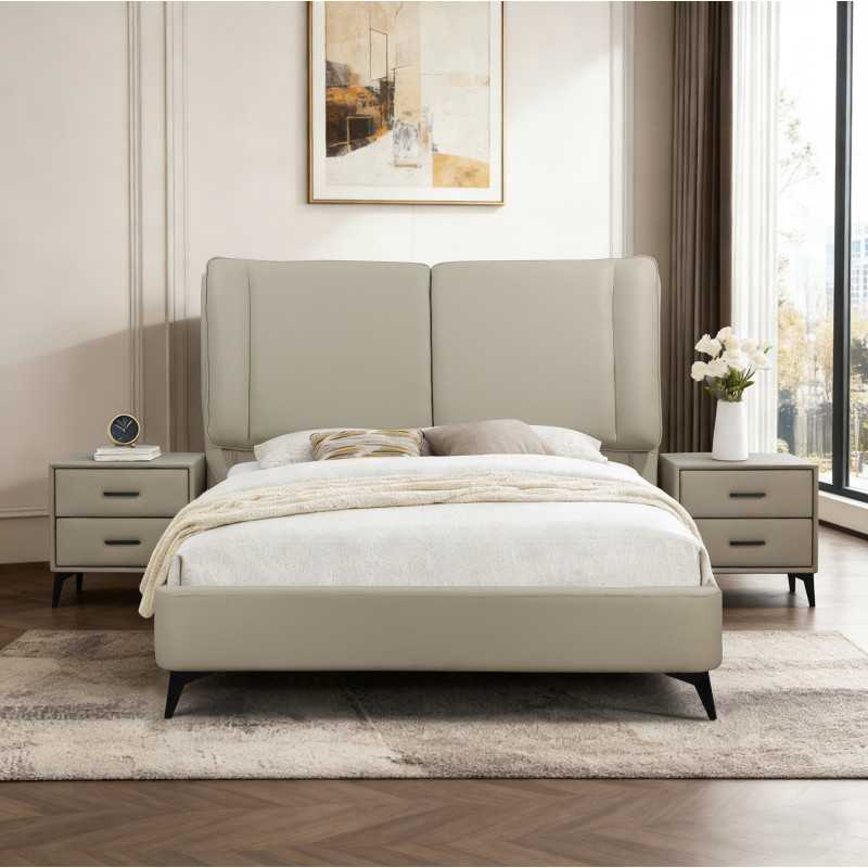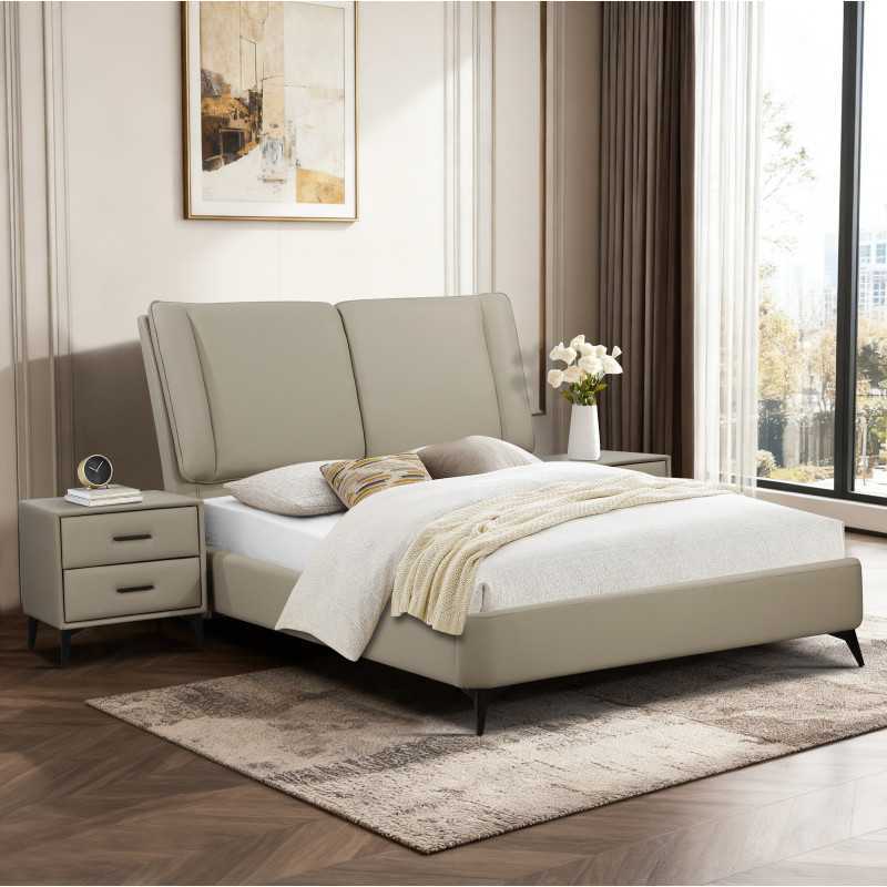 - Beige Faux Leather Upholstery: Easy-to-clean, smooth finish for a luxury bedroom look.