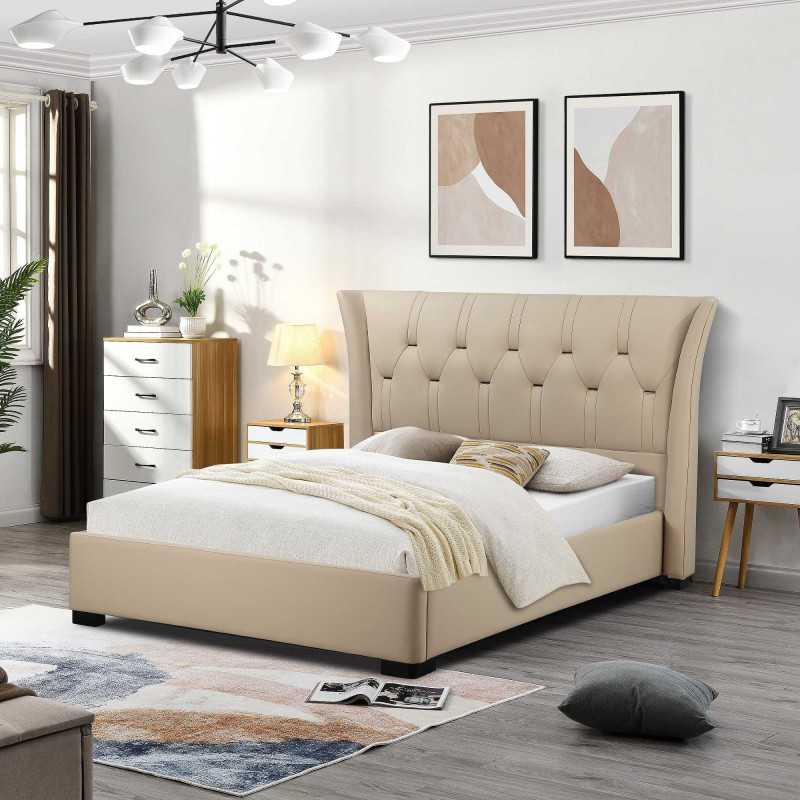 Tyrone Double Bed 4Ft6 Ottoman Bed Frame Faux Beige Leather – Key Features