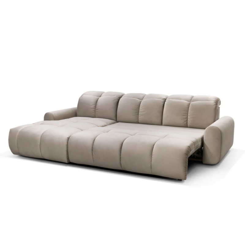 This fully upholstered corner sofa bed can be placed anywhere in your living space, including the center of the room. Its modern design makes it ideal for contemporary homes, apartments, and stylish interiors.