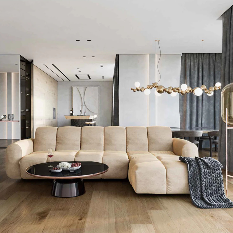 The Bullet Corner Sofa Bed is a stylish and comfortable sofa bed designed to combine modern elegance, everyday comfort, and practical functionality. Its distinctive rounded shapes and contemporary design create a beautiful focal point in any modern living room.