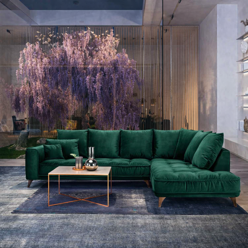 - Fully upholstered corner sofa – ideal for central placement