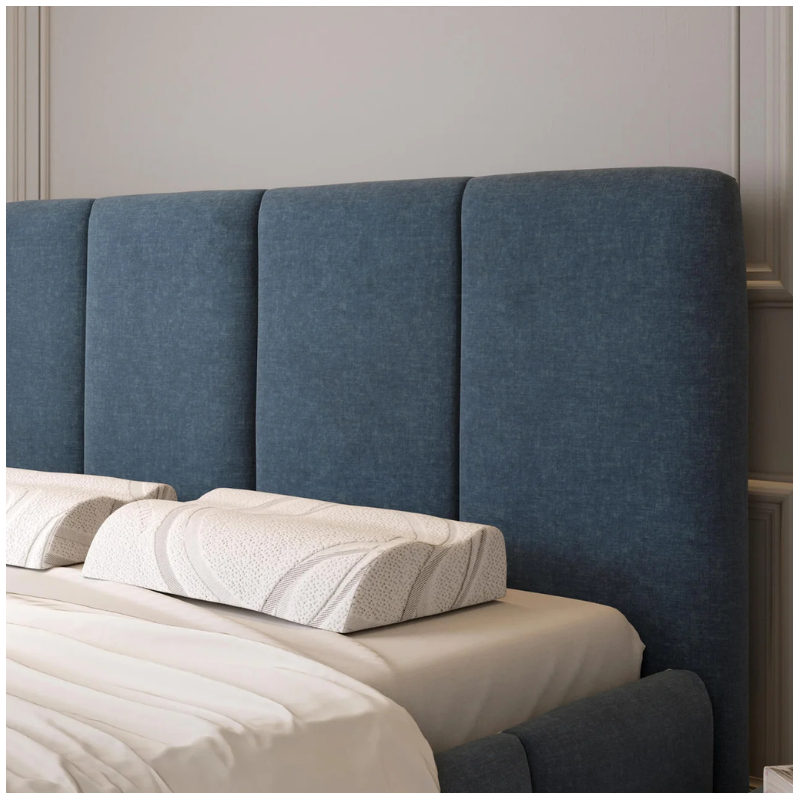 This beautifully crafted super king bed with storage 6ft showcases a minimalist headboard with smooth, clean lines that suit both contemporary and classic interiors. Its subtle detailing and refined upholstery make it an elegant centrepiece for any bedroom.