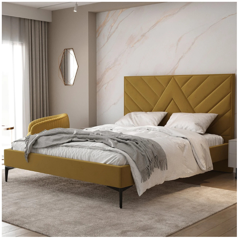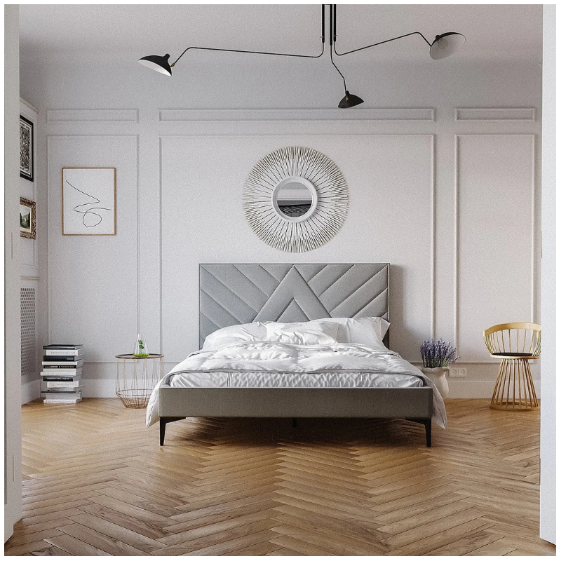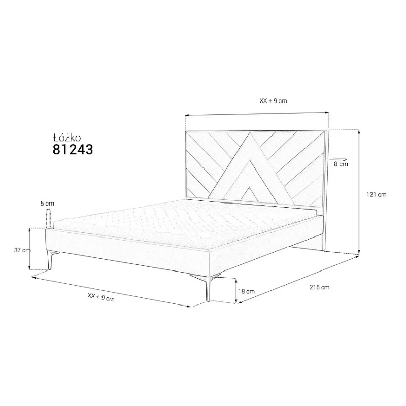 The Upholstered Bed Frame 43 is a modern, custom-designed bed that combines minimalist elegance with distinctive detailing. Its simple frame and high headboard with eye-catching diagonal stitching create a unique composition, making it ideal for both classic and contemporary bedrooms.
