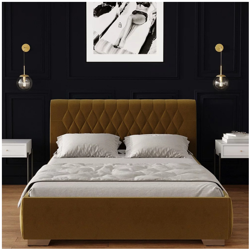 The Upholstered Bed Frame 18 is a modern, custom-designed bed that combines minimalist elegance with distinctive detailing. Its simple frame and high headboard with eye-catching diagonal stitching create a unique composition, making it ideal for both classic and contemporary bedrooms.