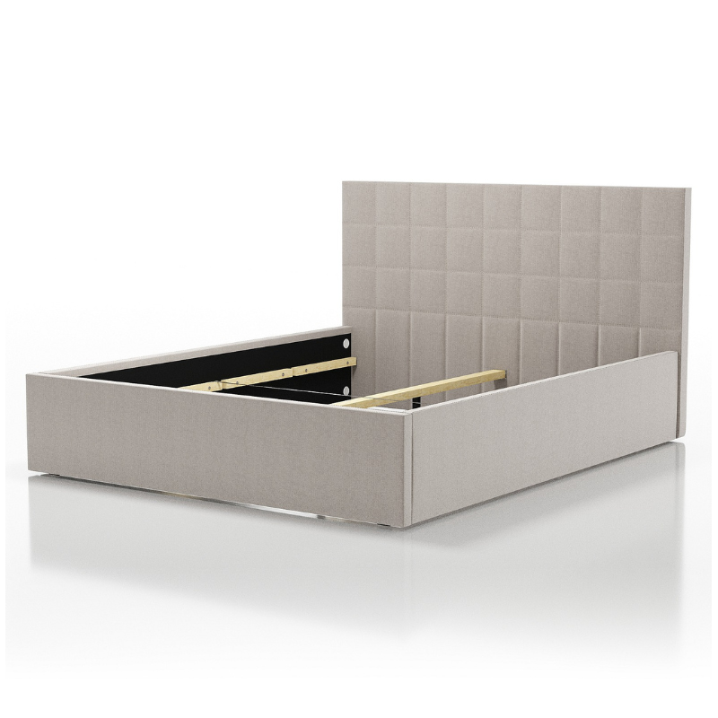 The Upholstered Bed Frame 31 is a modern, custom-designed bed that combines minimalist elegance with distinctive detailing. Its simple frame and high headboard with eye-catching diagonal stitching create a unique composition, making it ideal for both classic and contemporary bedrooms.
