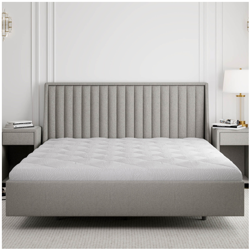 The Upholstered Bed Frame 80 is a modern, custom-designed bed that combines minimalist elegance with distinctive detailing. Its simple frame and high headboard with eye-catching diagonal stitching create a unique composition, making it ideal for both classic and contemporary bedrooms.