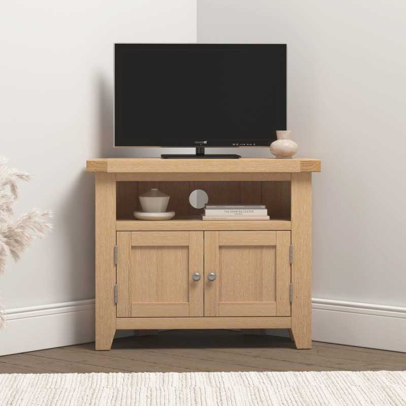 Windsor Corner TV Unit Natural Oak - A Smart Corner Solution for Stylish Living
