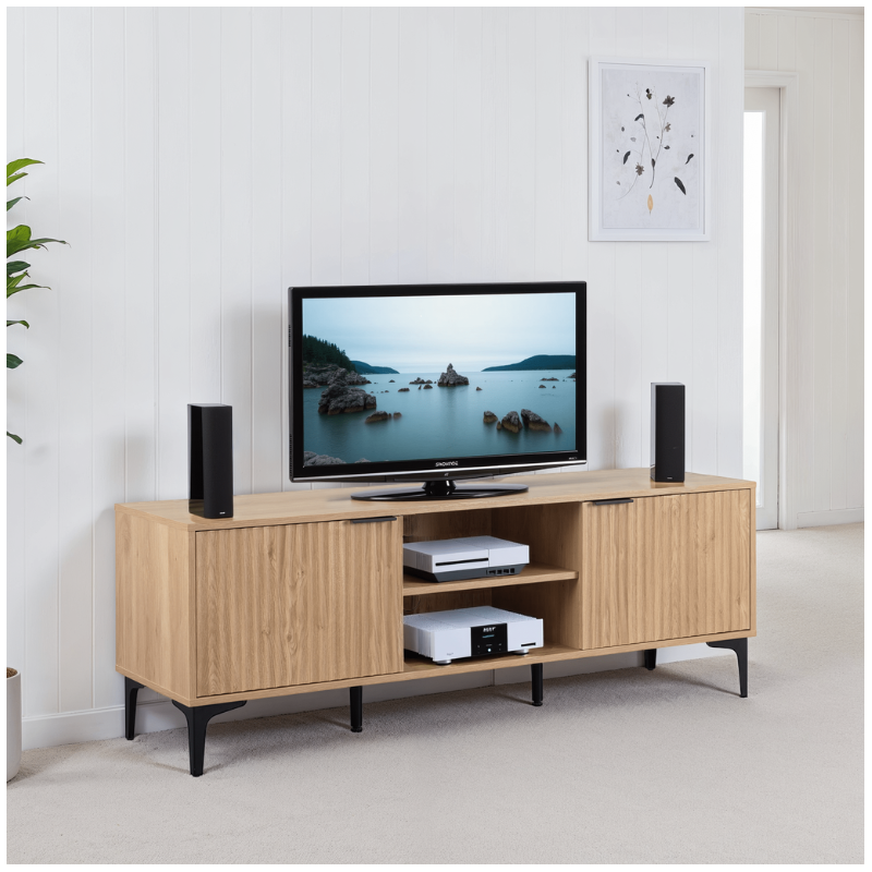Miami 2 Door TV Unit – Oak Effect / Black | Modern TV Stands in Ireland