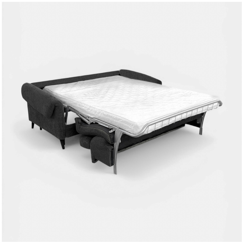 Charcoal upholstery is a modern and versatile choice for this sofa bed, offering a sleek and timeless look suitable for any interior style.