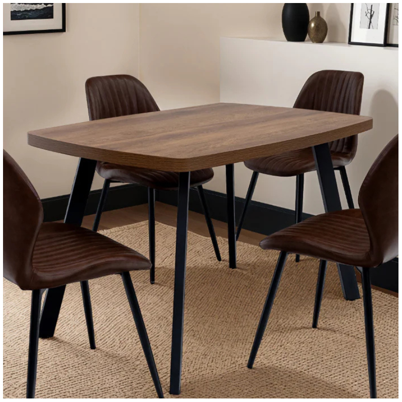 Panama Small Dining Table – Dark Oak with Black Steel Legs