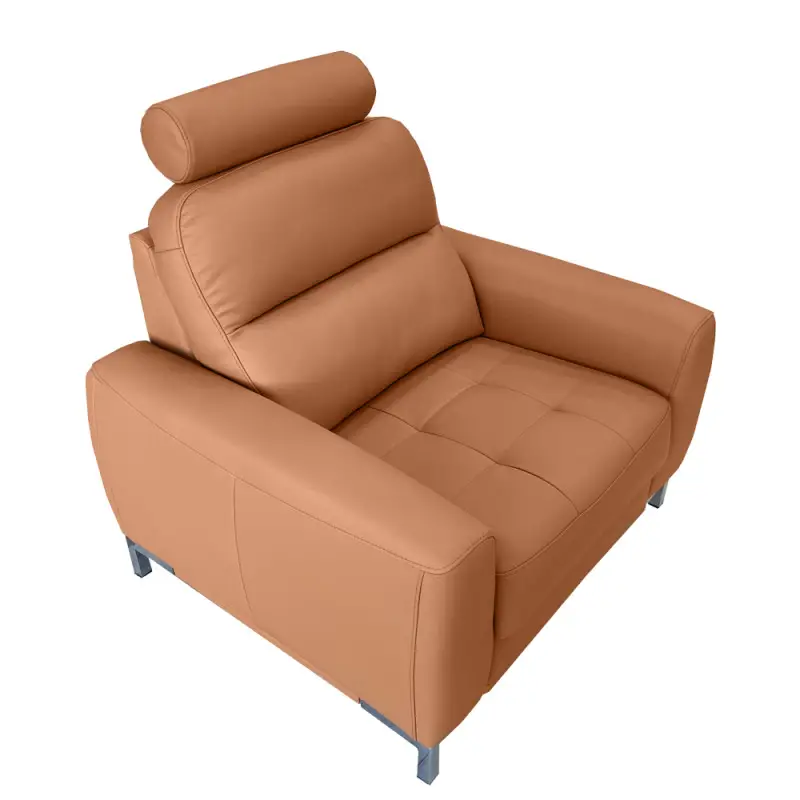 Enhance your living room with the Lino Armchair with Headrest, a masterpiece of elegance and comfort. Upholstered in premium Italian leather, this armchair combines timeless sophistication with modern functionality, making it a perfect addition to any home. Whether used as a standalone piece or paired with the Lino Chaise Sofa, it offers unmatched luxury and comfort.
