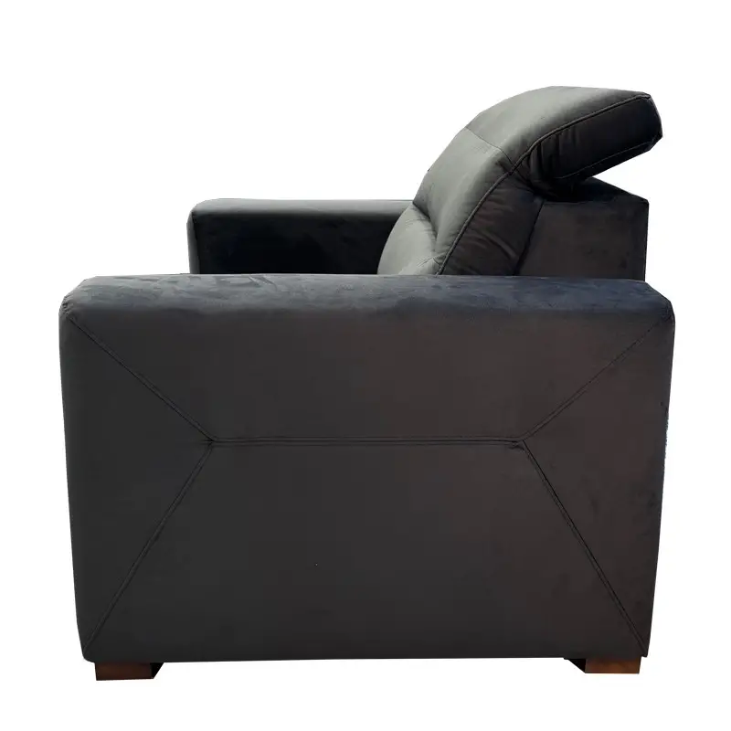 The Excellence Armchair, upholstered in dark grey Napoli 20 velvet fabric, is part of the Excellence Modular Sofa Range. This armchair combines stunning contemporary design with exceptional functionality, making it a standout piece among armchairs for any living room. Its adjustable headrest ensures maximum relaxation, while the high-performance fabric offers durability and style for a premium armchair experience.