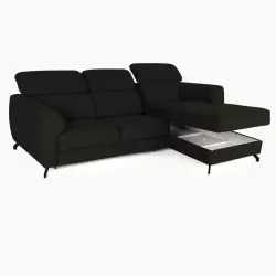 Equipped with a smooth fold-out sofa bed and a large hidden storage section, this corner sofa bed is perfect for overnight guests and everyday use. The adjustable headrests, filled with high-elastic foam, offer personalised comfort for lounging, reading or relaxing.