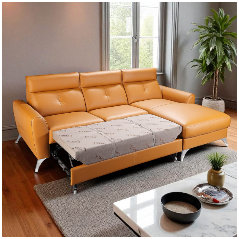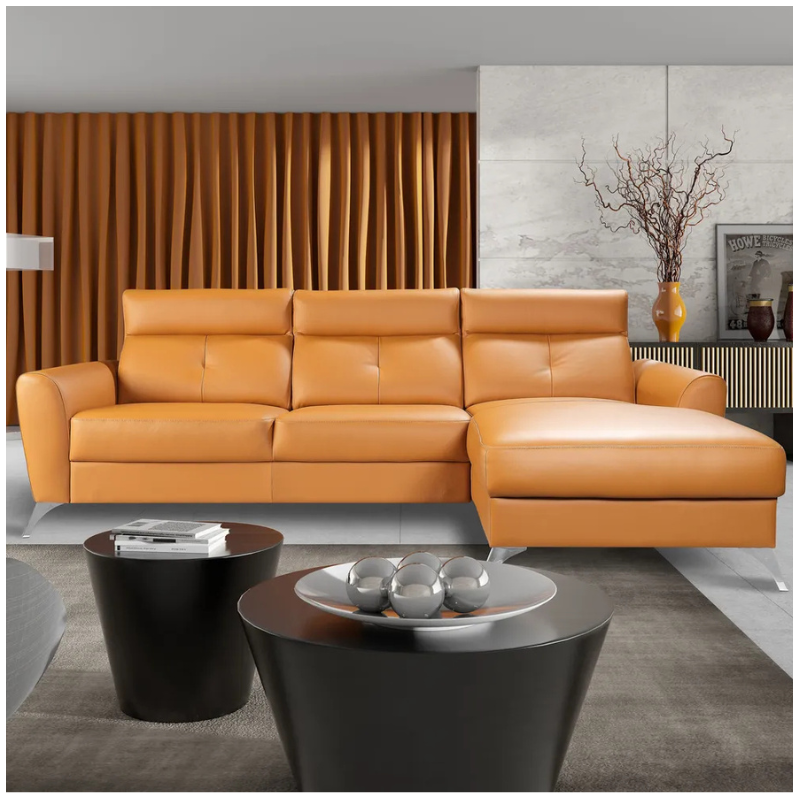 Transform your living space with the Loft Corner Sofa Bed in Orange Italian Leather – a premium choice among modern corner sofas and sofa beds in Ireland. This fully customizable, made-to-order sofa is designed to meet your exact needs. Whether you're searching for luxury couches in Ireland, a practical corner sofa with a hidden bed, or a statement piece upholstered in genuine Italian leather, the Loft delivers exceptional comfort, flexibility, and quality.