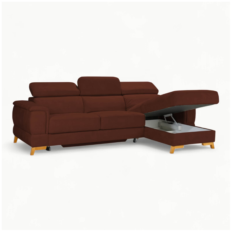 Pesaro Brown Corner Sofa Bed with Storage — Bespoke L-Shape Sleeper