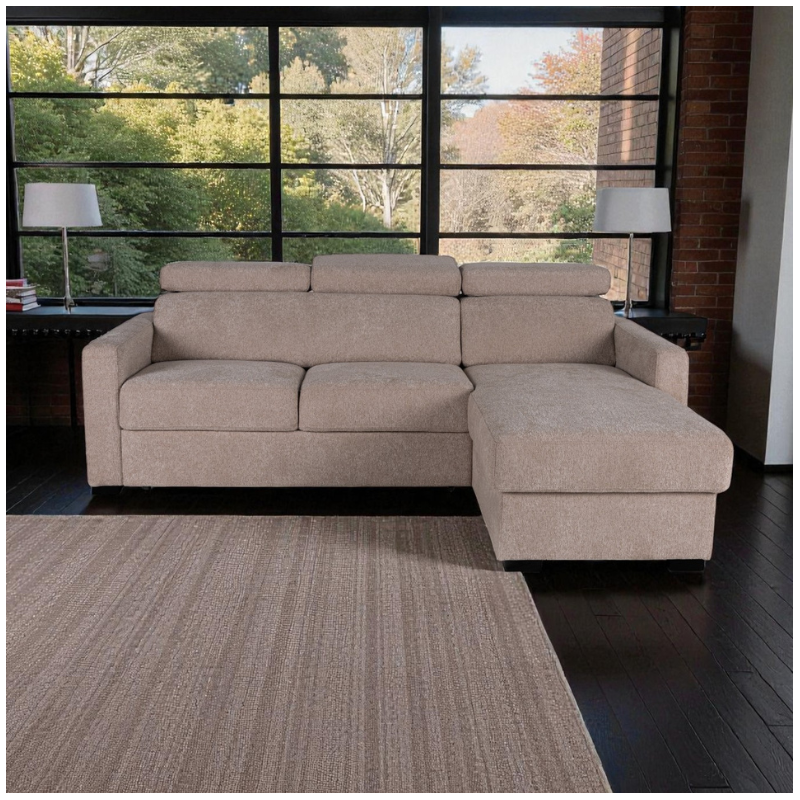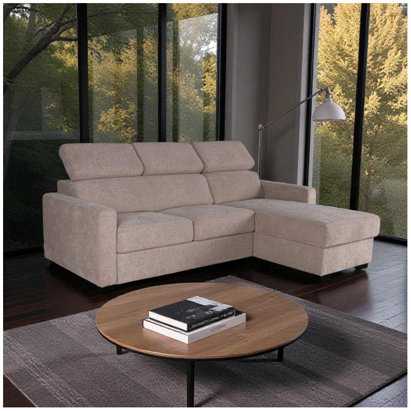 The Torino Bespoke Corner Sofa Bed With Storage in Taupe is a modern and practical solution for homes in Ireland. It combines everyday comfort, a spacious sofa bed, and smart hidden storage in one elegant corner design.