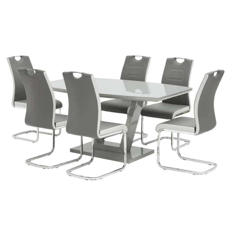 Designed for both practicality and sophistication, this cantilever dining chair features cushioned seating and a supportive high back. The chrome base adds durability and a sleek finish, making it ideal to pair with marble, glass, or wooden dining tables.