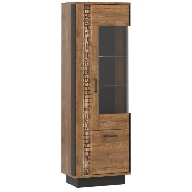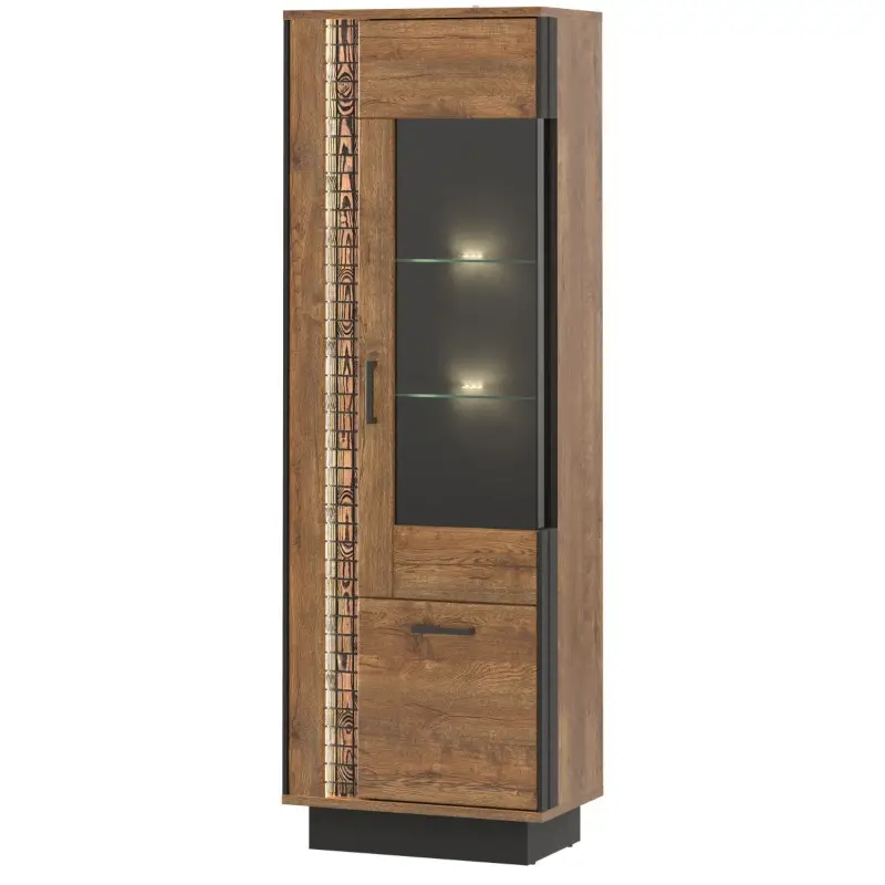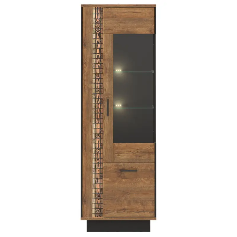 DORIAN Tall Display Cabinet – April Oak & Black | J&B Furniture