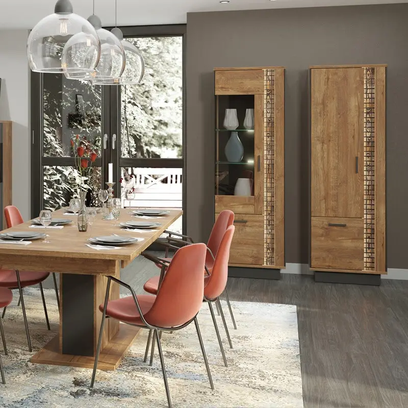 The DORIAN furniture range is renowned for its unique and stylish appearance, making it a perfect choice for modern Irish interiors. This contemporary collection combines elegance with functionality, ensuring it complements any modern home decor. A standout feature is the natural wood strip with LED backlighting, which enhances its beauty and adds a warm, inviting glow to your living space.