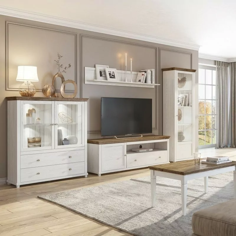 The Eva Wall Shelf is part of the timeless Eva collection, designed to bring brightness and elegance to any home. The combination of light Abisko Ash with traditional wood tones creates a fresh and graceful look, while the forest green finish with Ribbeck Oak top surfaces adds a bold, stylish touch. Perfect for living rooms, dining areas, or as a practical wall shelf for kitchens, the Eva shelf blends classic design with modern functionality.