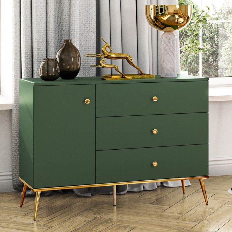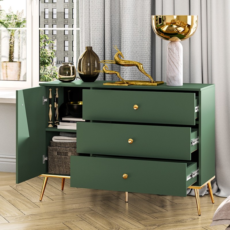 Forest Green Sideboard – 1 Door 3 Drawer Storage Cabinet
