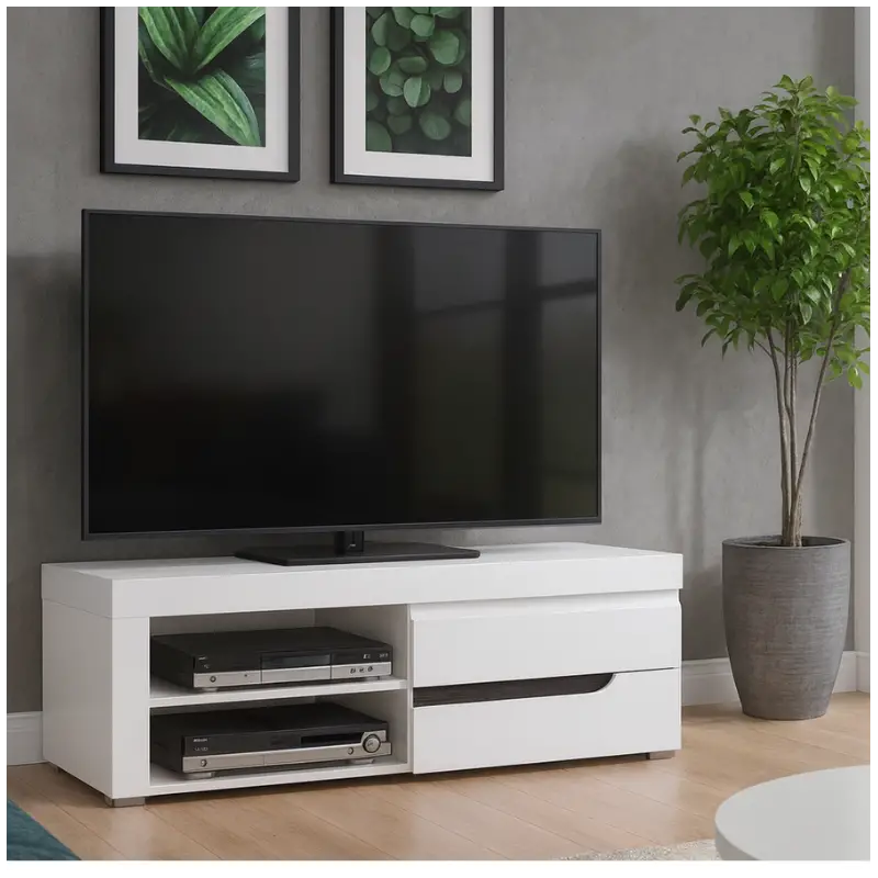 The IRMA Modern White TV Unit is a perfect blend of modern design and practical storage. Crafted for contemporary homes, this elegant TV stand features a clean white finish with both matte and high-gloss elements to create a sophisticated look that enhances any living room or lounge area.