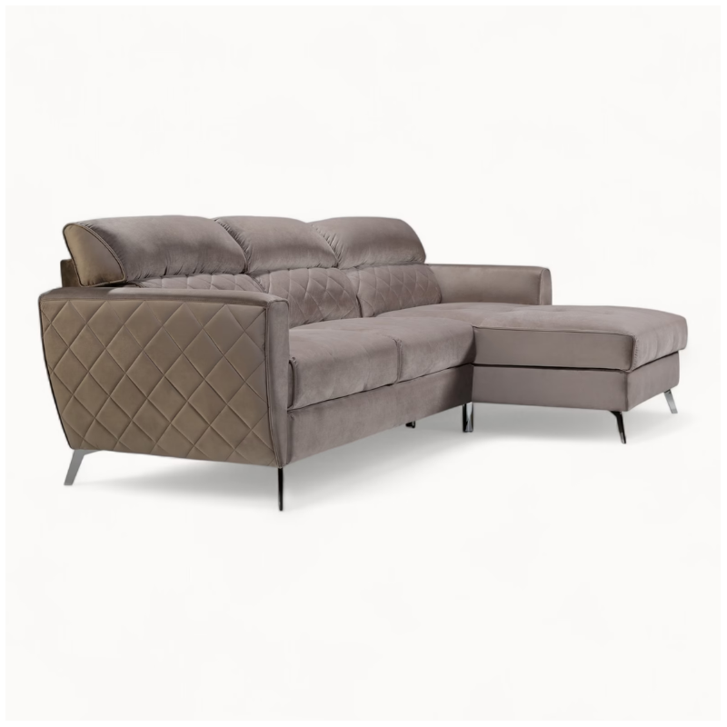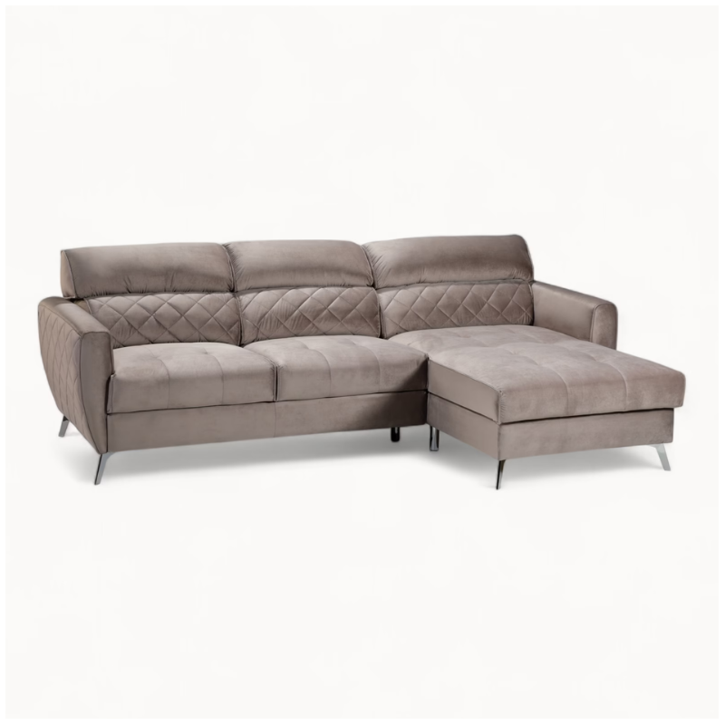 Scandic Corner Sofa Bed in Greige Velvet – Bespoke Corner Sofa Bed in Ireland