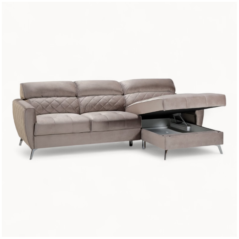 Scandic Bespoke Corner Sofa Bed and Storage – in Greige Velvet