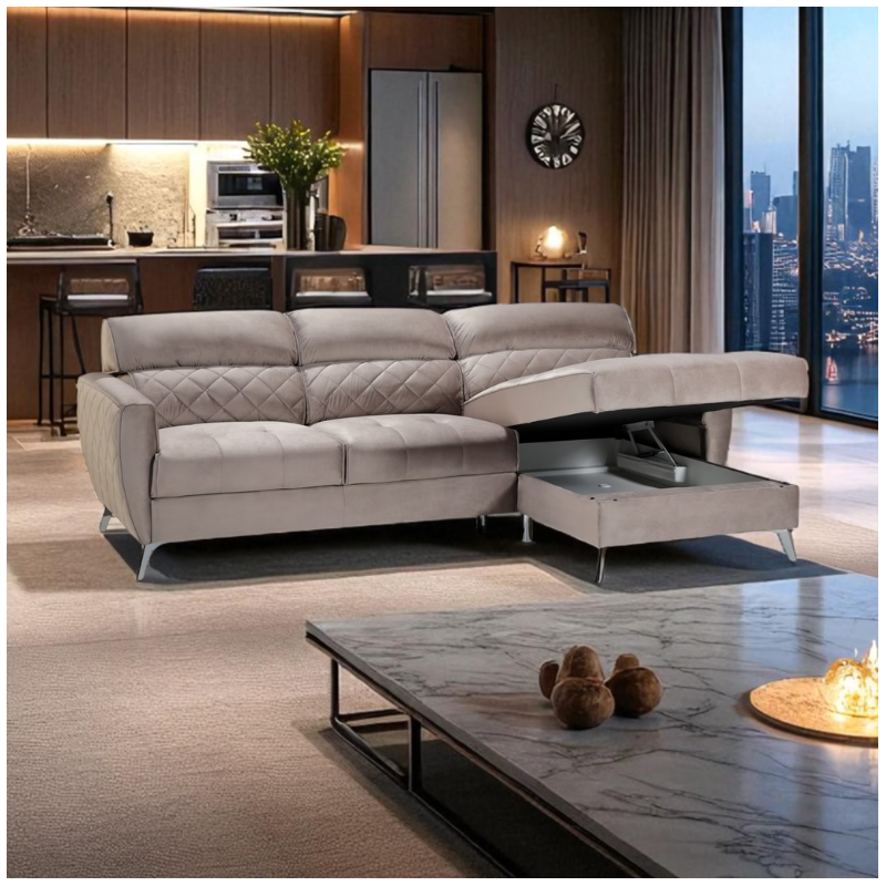 - Storage Options: Optional chaise lounge with storage or square ottoman