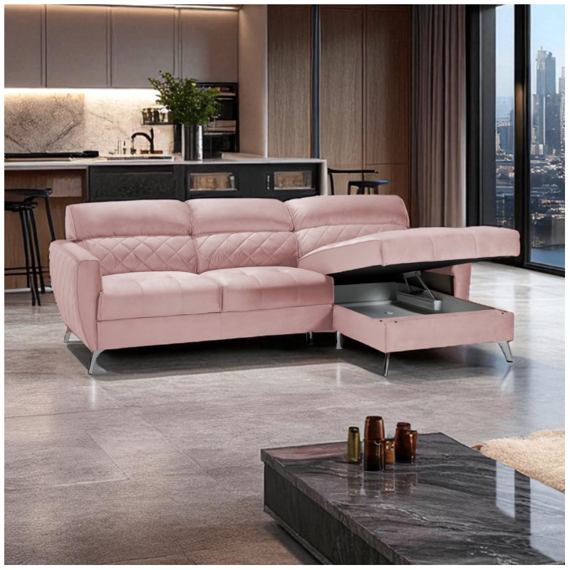 Scandic Custom Corner Sofa Bed and Storage – Blush Pink Velvet