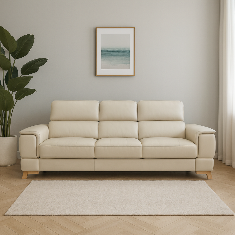 Pesaro 3 Seater Sofa Bed in Beige Italian Leather – Designed to Fit, Built for Comfort