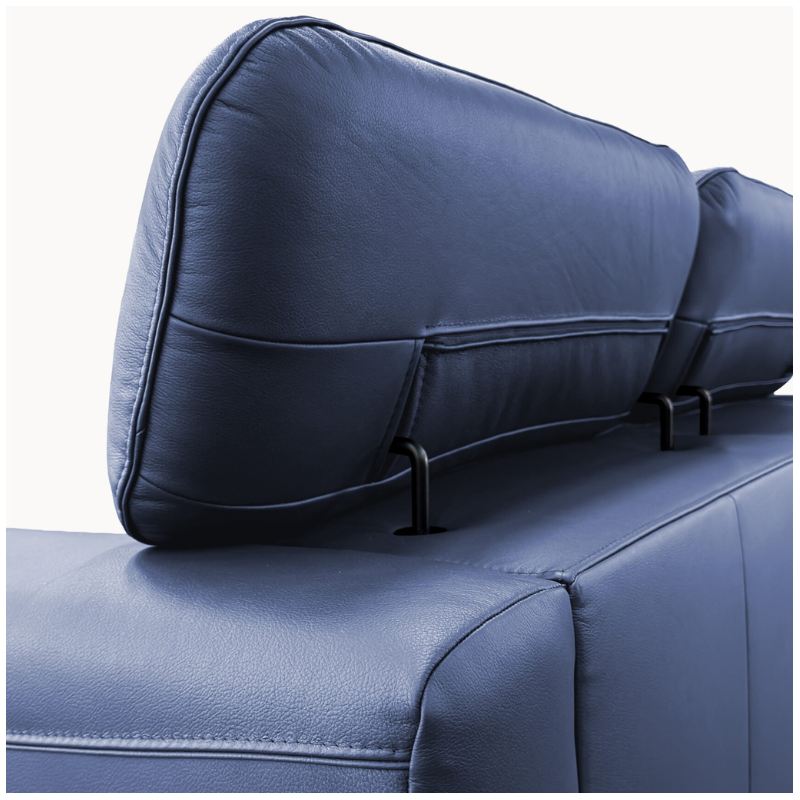 Blue leather upholstery is a striking and elegant choice for this model, offering a designer look with practical durability. Popular shades include navy blue, ocean blue and deep cobalt, available in both fabric and Italian leather sofa upholstery.